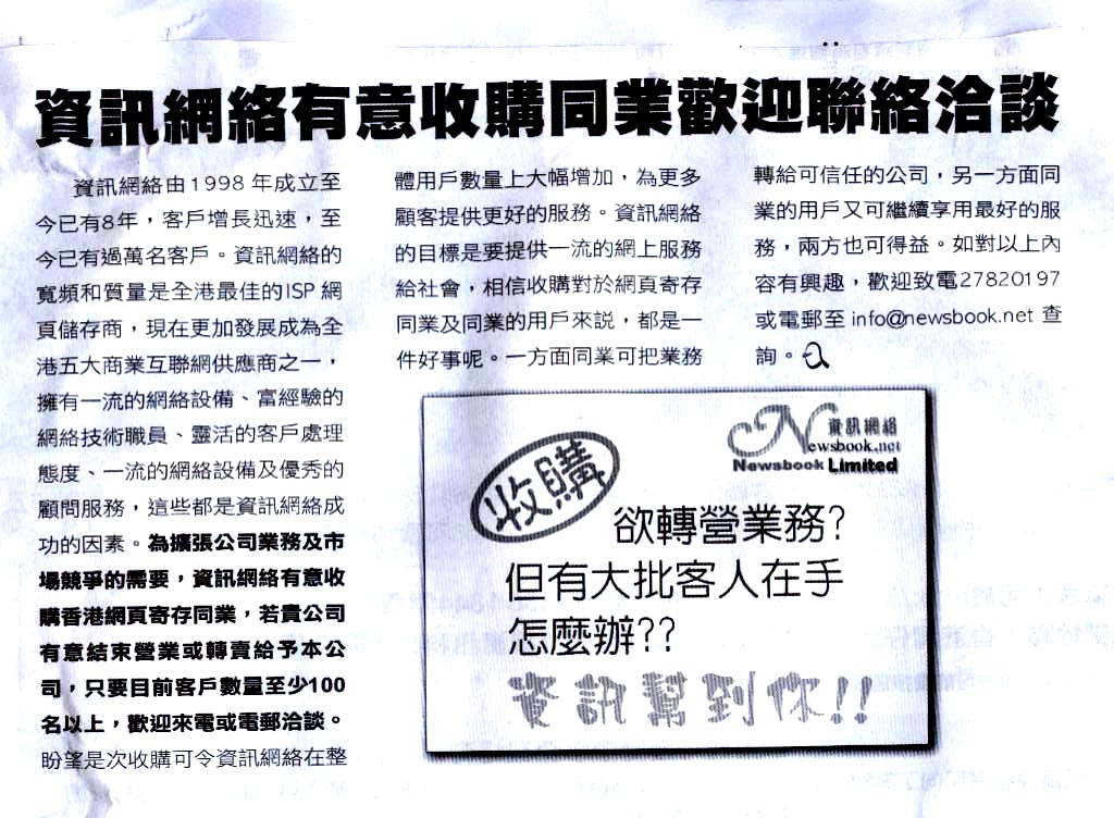 Newsbook intent to purchase Company with same business,welcome for negotiation