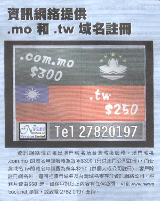 Newsbook provide Macao and Taiwan domain register service