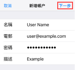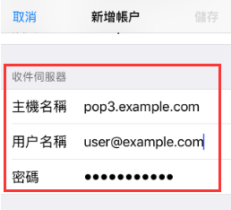 10 向下找到收件伺服器資料,填寫相關資料,用戶名稱填寫完整電郵地址