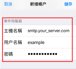 11 向下找到寄件伺服器資料,填寫相關資料,完成後按右上角"儲存"