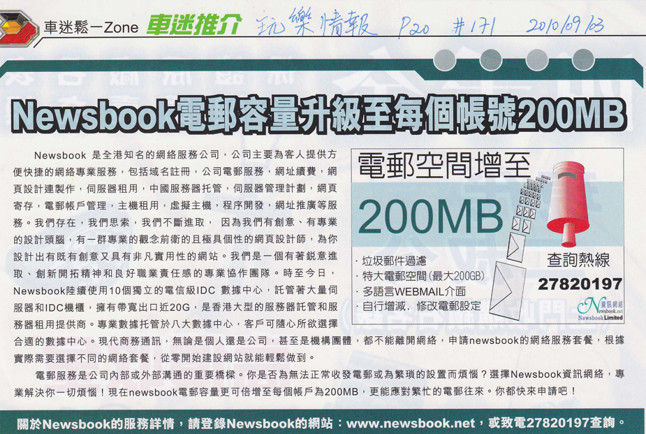 電郵服務是公司內部或外部溝通的重要橋樑。你是否為無法正常收發電郵或為繁瑣的設置而煩惱。選擇Newsbook資訊網絡, 專業解決你一切煩惱! 現在newsbook 電郵容量更可倍增至每個帳戶為200MB, 更能應對繁忙的電郵往來。