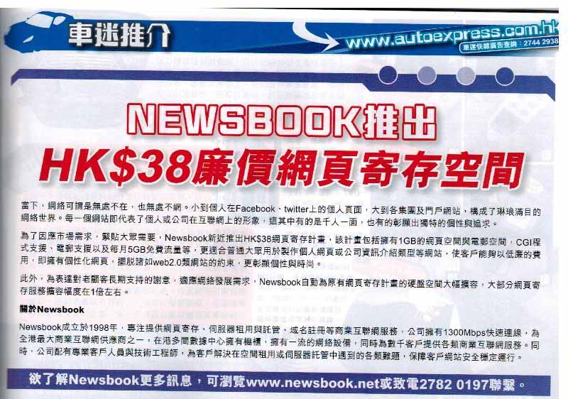 Newsbook推出HK$38廉價網頁寄存空間