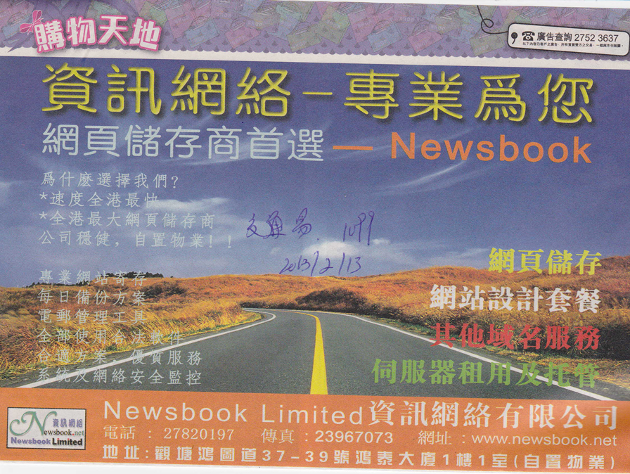 資訊網絡是香港最大的網頁儲存,網頁寄存,伺服器托管,伺服器租用,網頁設計公司 資訊網絡(Newsbook)是香港最具規模的網頁儲存商,提供穩定可靠的網頁寄存及電郵服務,適合香港,中國及其他地區客戶。
