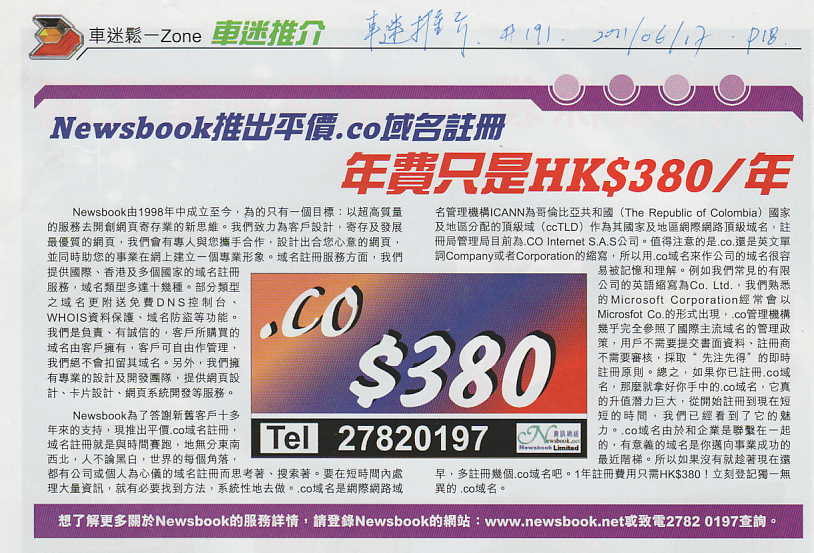 ewsbook 推出平價.co 域名註冊 ,年費只是hk$380