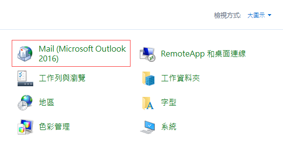 02 檢視方式為"大圖示"的情況下,選擇"Mail(Microsoft Outlook 2016)".