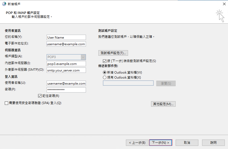 06 此時修改登入資訊的"使用者名稱"和"密碼".