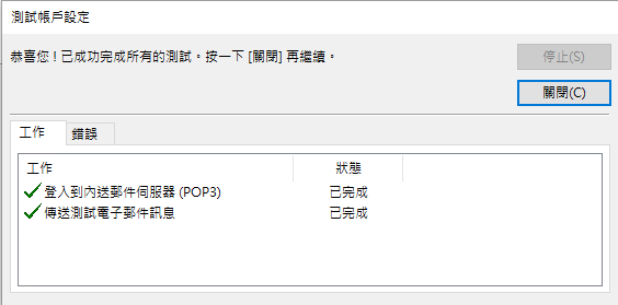 10 測試完成,點擊"關閉".
