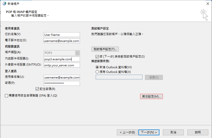 使用我司smtp伺服器,smtp.your_server.com改為smtp1.uhom.net, 然後選擇"其它設定",然後選擇"外寄伺服器",輸入smtp帳戶和密碼.