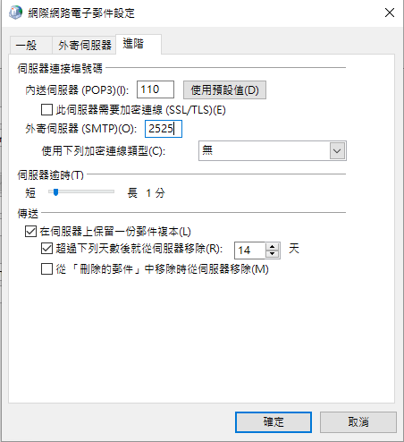 08 選擇"進階",修改smtp端口為2525,選擇"確定".