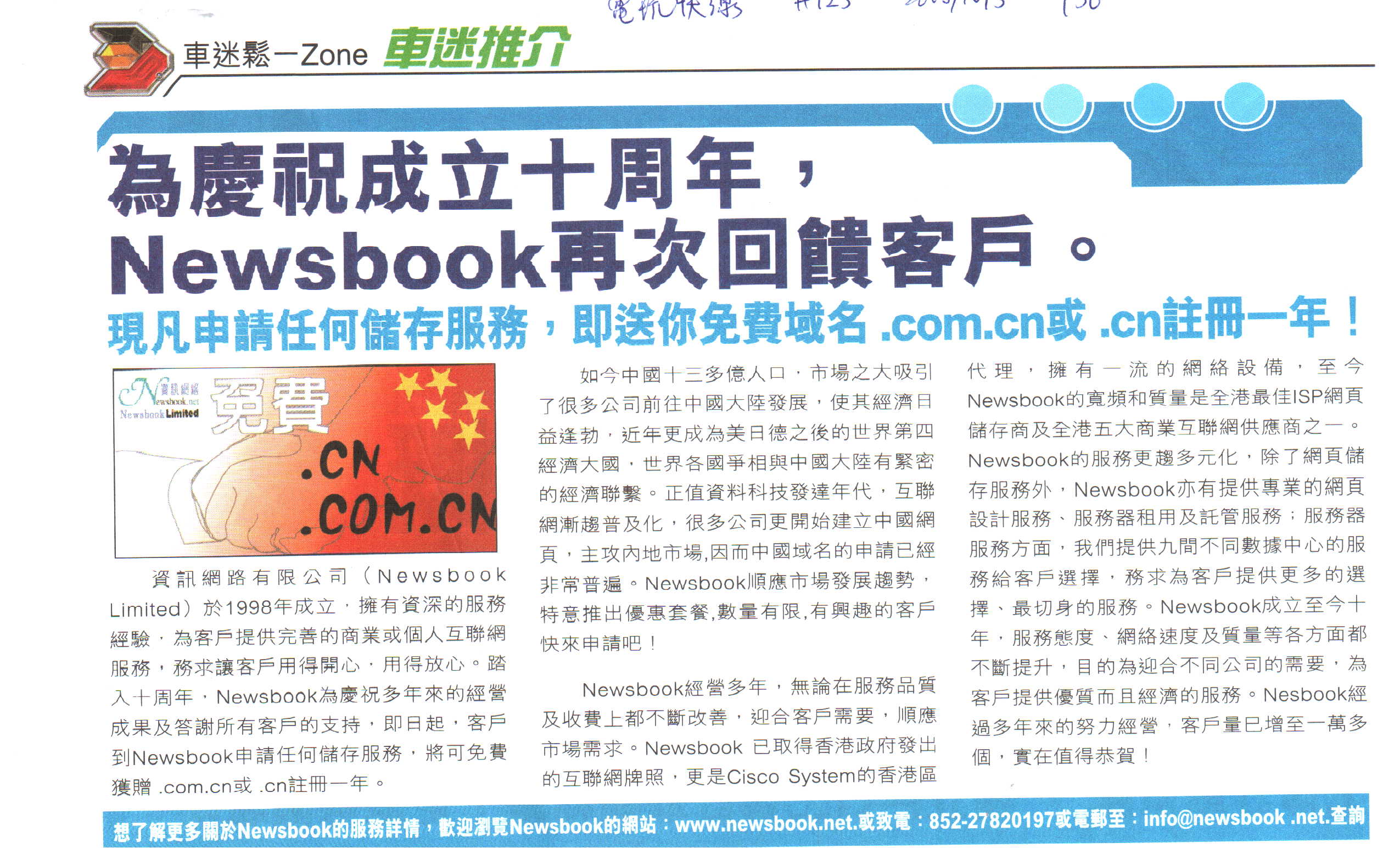 Newsbook 10th anniversary, free .com or .cn domains as reward of client's support.