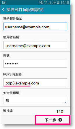 08 输入POP3服务器和使用者名称密码,再按下一步