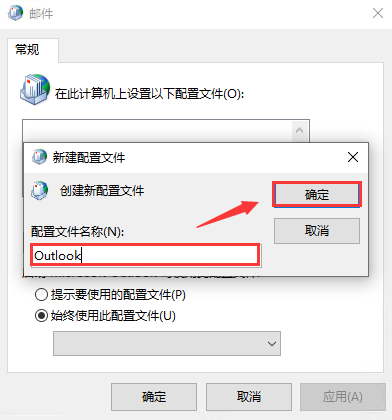 04 输入配置文件名称,可以设定为"Outlook",点击"确定".