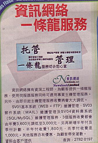 Newsbook management hosting services both professional and cost-effective, and provide customers with one-stop services to meet the needs of customers. It is very convenient. If the above are interested in the details, please call 27820197 or e-mail to info@newsbook.net inquiries.