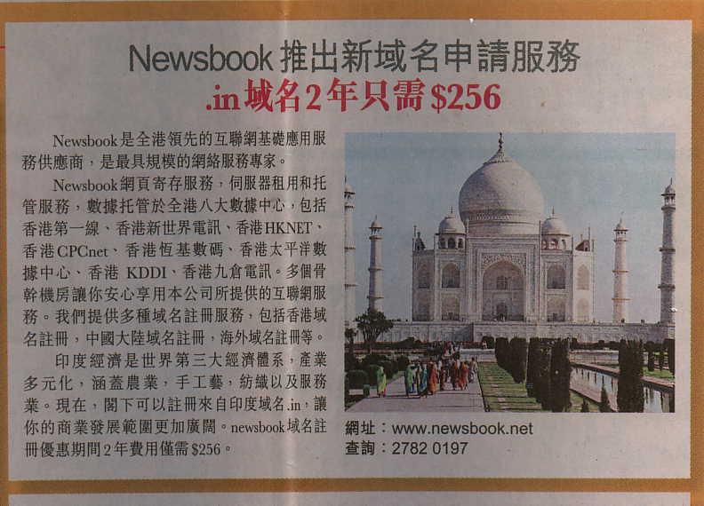 Newsbook provide new domain registration service, just $256 per 2 year for .in domain.