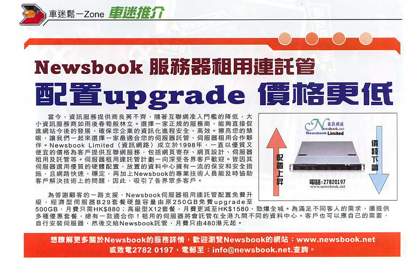 Newsbook Server rental with co-location service. Hardware upgrade, price decrease