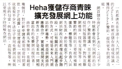 One of the largest portal heha.com in Hong Kong has gained the support from Newsbook